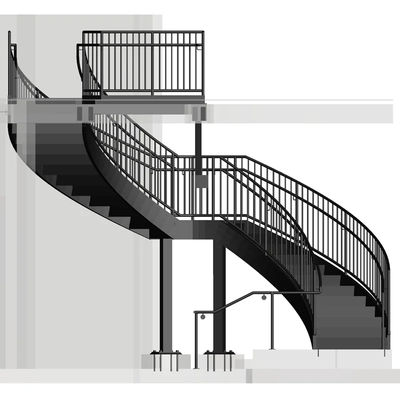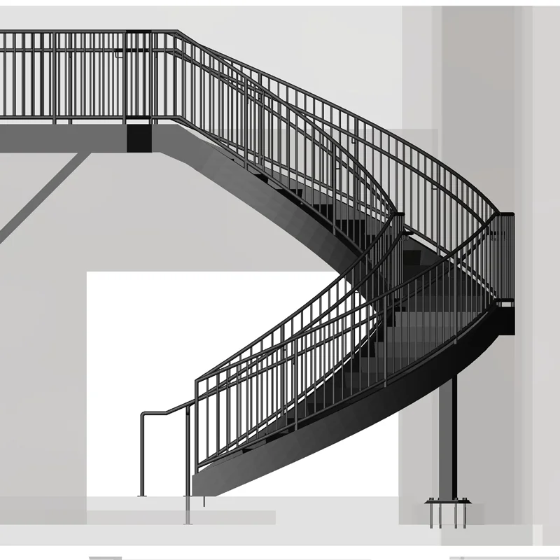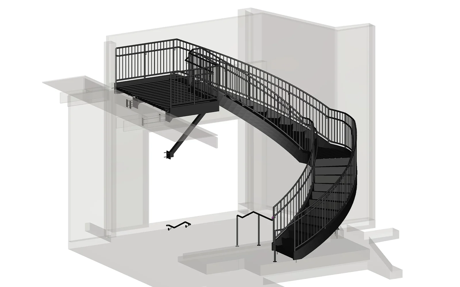 Solid Design and Detail was hired to design a new feature stair for the lobby of Outfront Media’s Berkley location. They had originally wanted us to design a segmented geometric stair that would effectively fill the space and align with the angled walls of the lobby. After many design adjustments, we just couldn’t get a design to work that would also be compliant to California building codes. So we went back to the drawing board and designed a curved stair that would still look great and also get approved by the city.