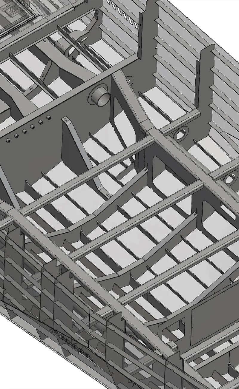 We apply advanced parametric 3D modeling for naval design. From hulls and structures to intricate details, we create accurate 3D CAD designs that are crucial for successful naval projects. We provide a design process that prioritizes accuracy without compromise.